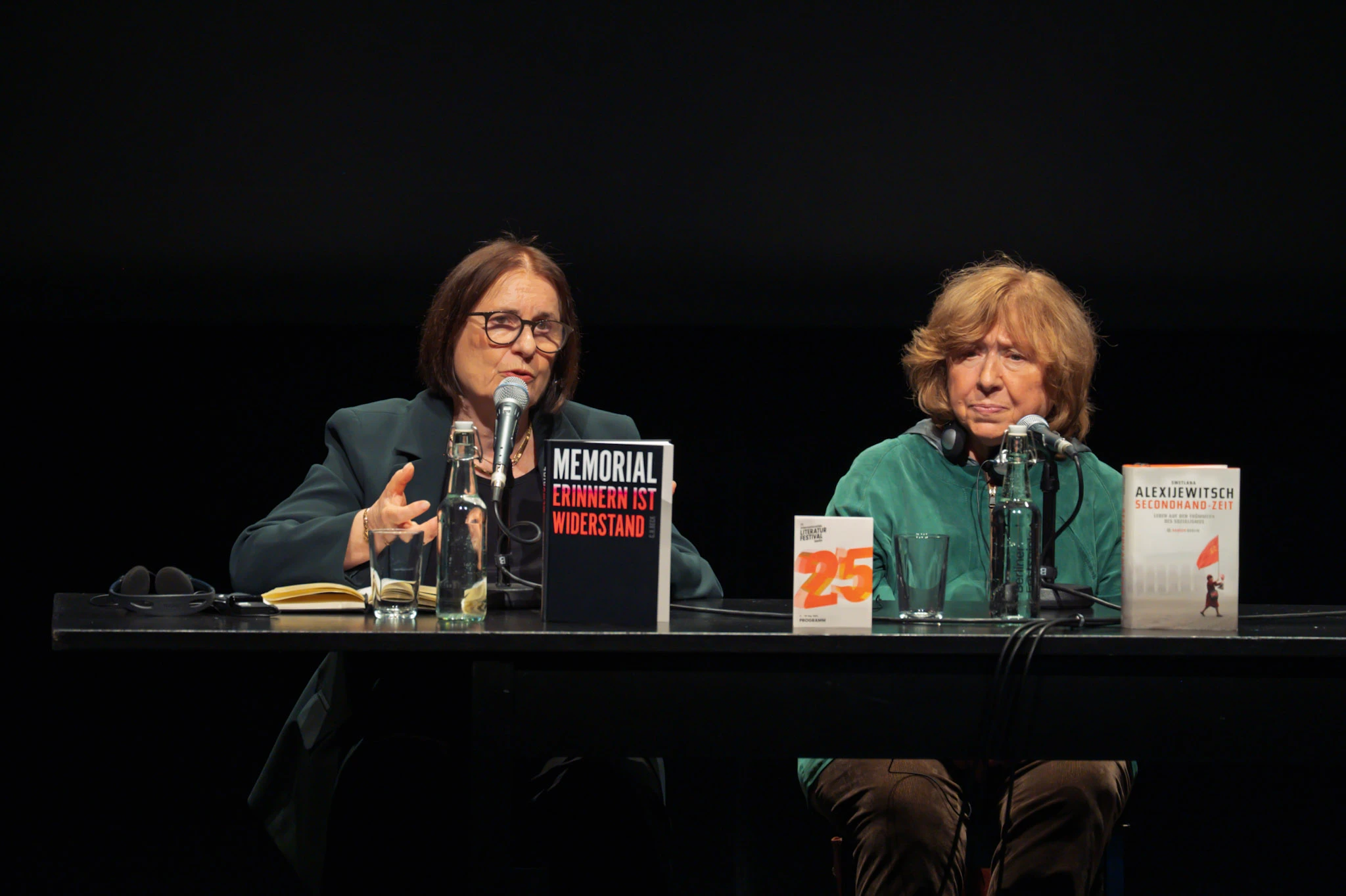 Ein „Gipfeltreffen der Literatur und der Menschenrechte“ nannte die Moderatorin Natascha Freundel das Gespräch zwischen Irina Scherbakowa, Vorsitzende von Zukunft MEMORIAL, und der belarusischen Autorin Swetlana Alexijewitsch beim diesjährigen Internationalen Literaturfestivals Berlin (ilb).